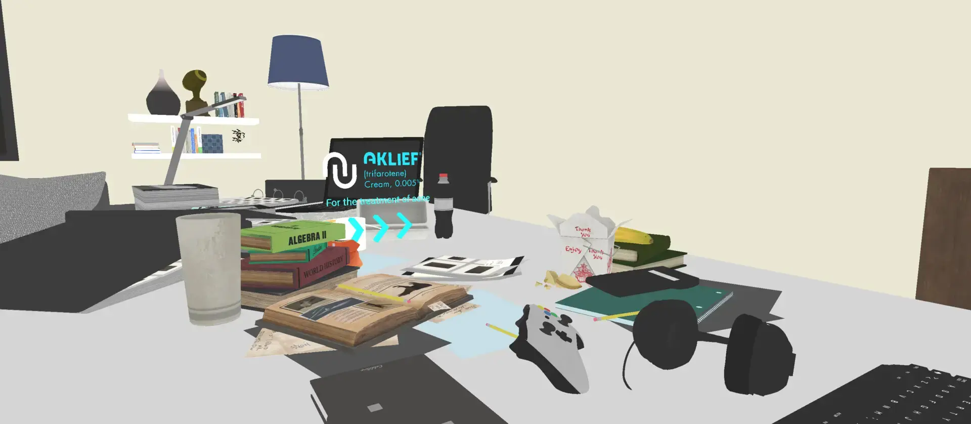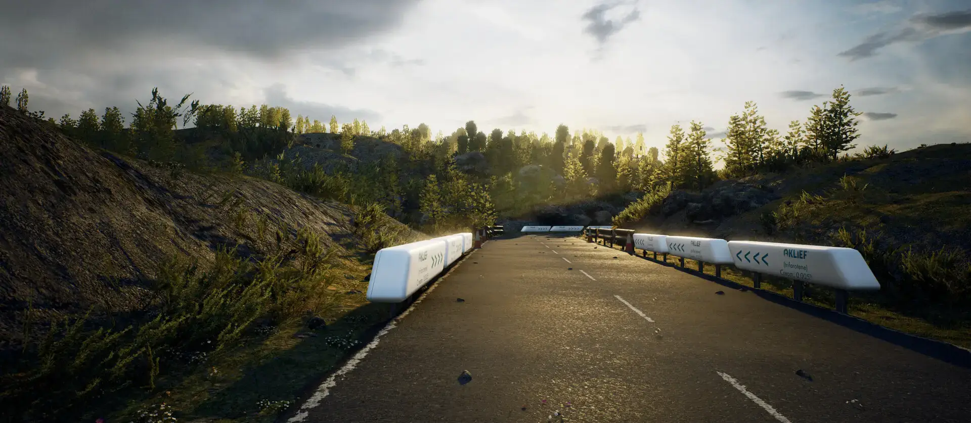 I collaborated with Amanda Schwartz on this Aklief ad for Galderma via Real Chemistry. Built and designed the environment in Unreal Engine, animated the car in Maya, imported animation to UE. Amanda handled post-production edits and effects. Used Turbo Squid car model re-textured for branding, UE Marketplace for props and effects, Brushify.io for background landscapes. This is an early WIP version.